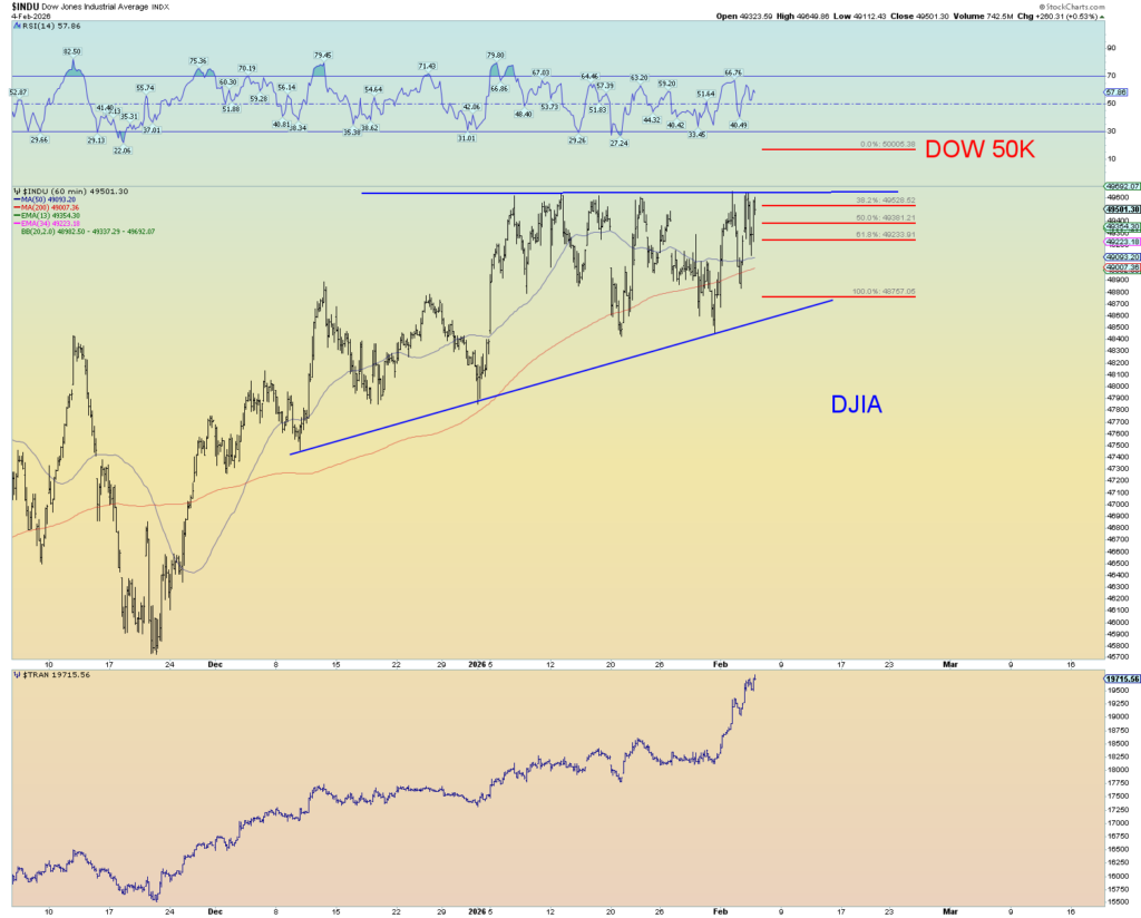 The DOW has a distinct ascending triangle pattern. It is one reason to think we still get an upside pop overall out of the market. I just don’t see how the market makes and ALL_TIME high near DOW 50,000 and not finish the job. I think it’ll finish the job before it’s all over. That’s a bit over a 1% move up from today’s close.