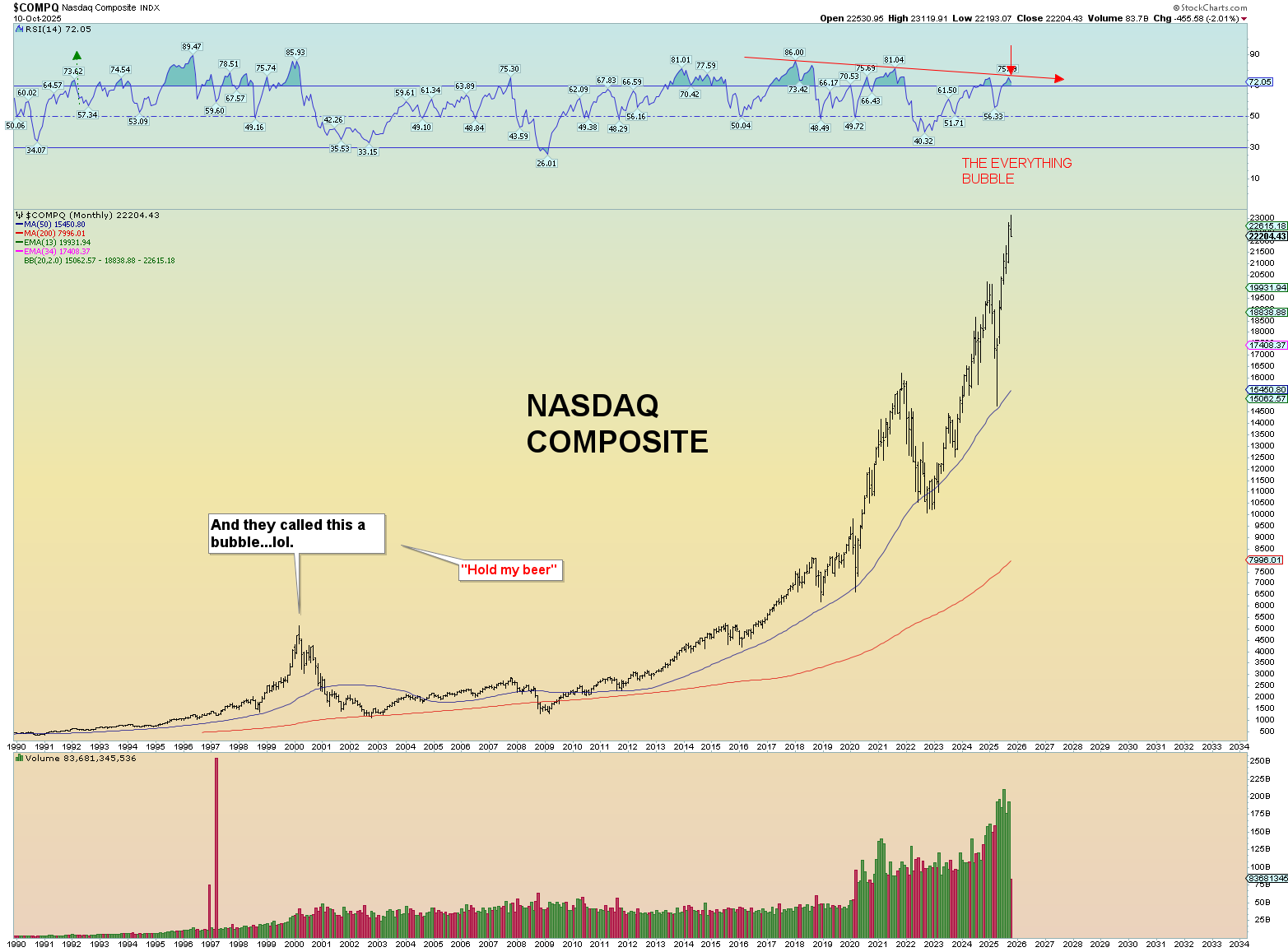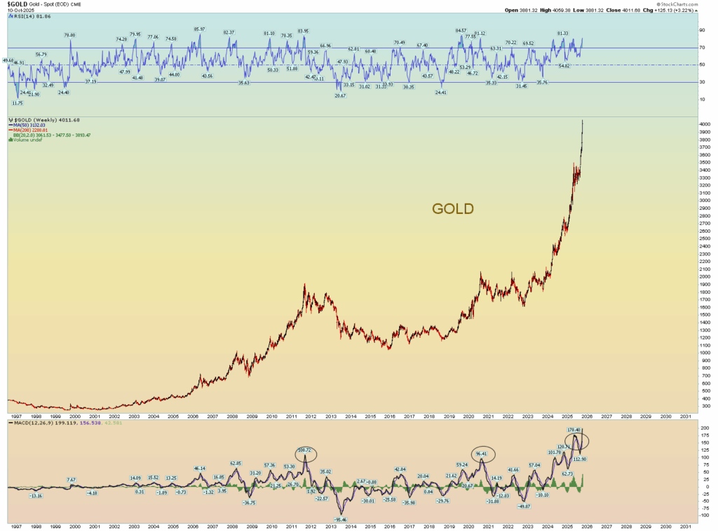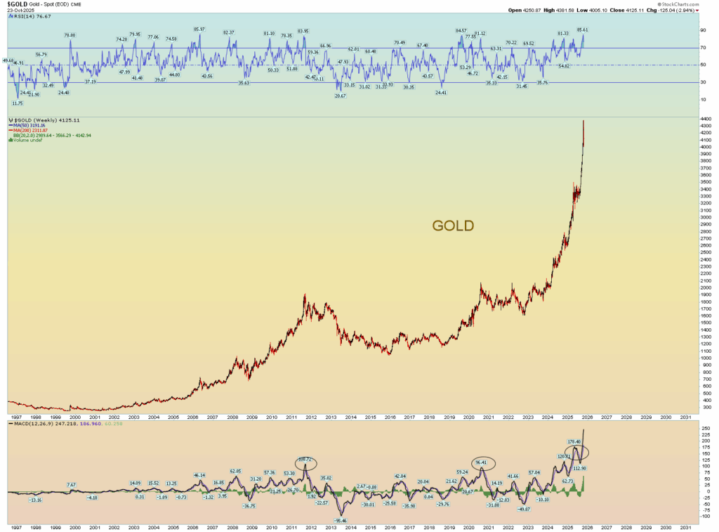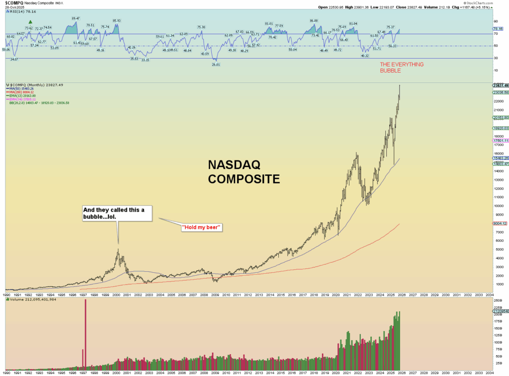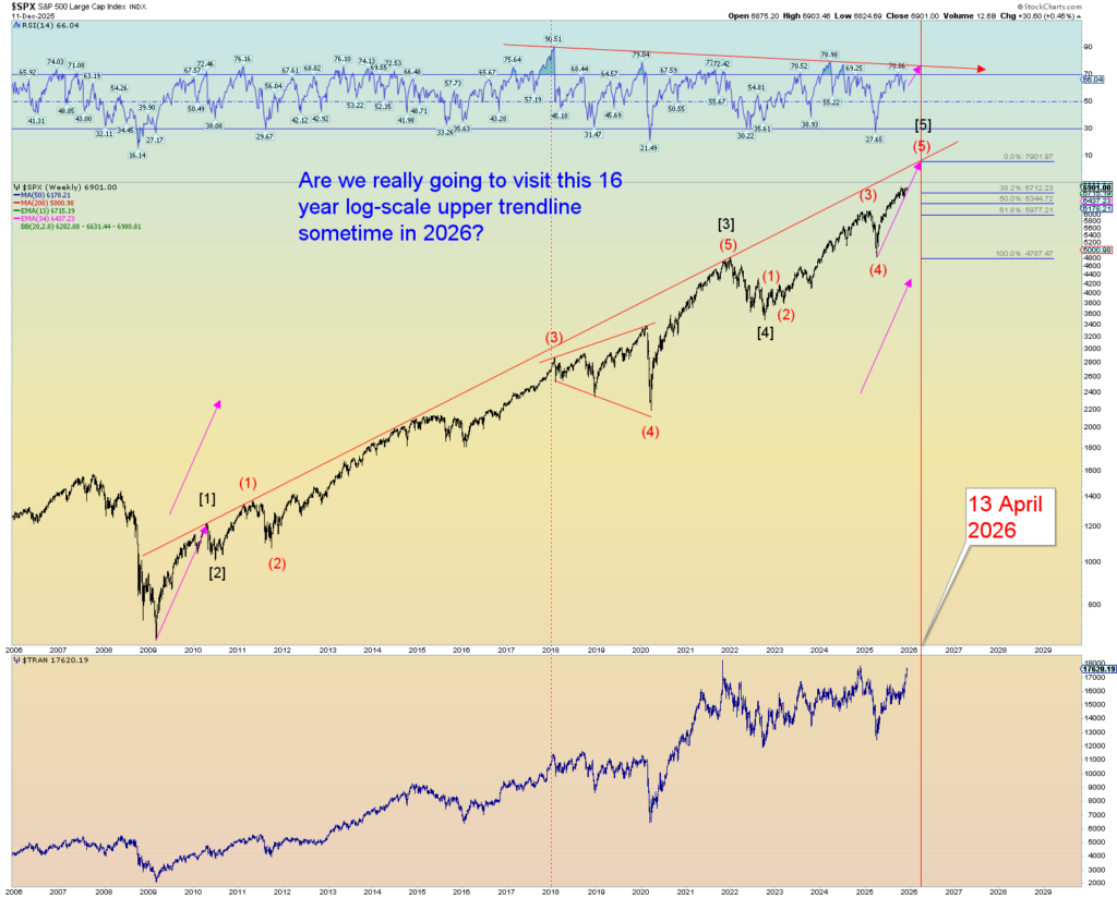 Yet it was on my heart as an example that if this wretched world is reaching peak financial exuberance and bubble behavior, an April 13th, 2026, target of approximately 7900 SPX would be another 13% rise from today’s peak. This would obviously be a hyper-focus on all things “AI” and perhaps a perceived sense of “loosey goosey” Fed monetary policy that they just announced today and is surely to come in some form or another. But that will be an illusion. The irony is that the higher the market goes, the lesser influence the Fed has controlling it.