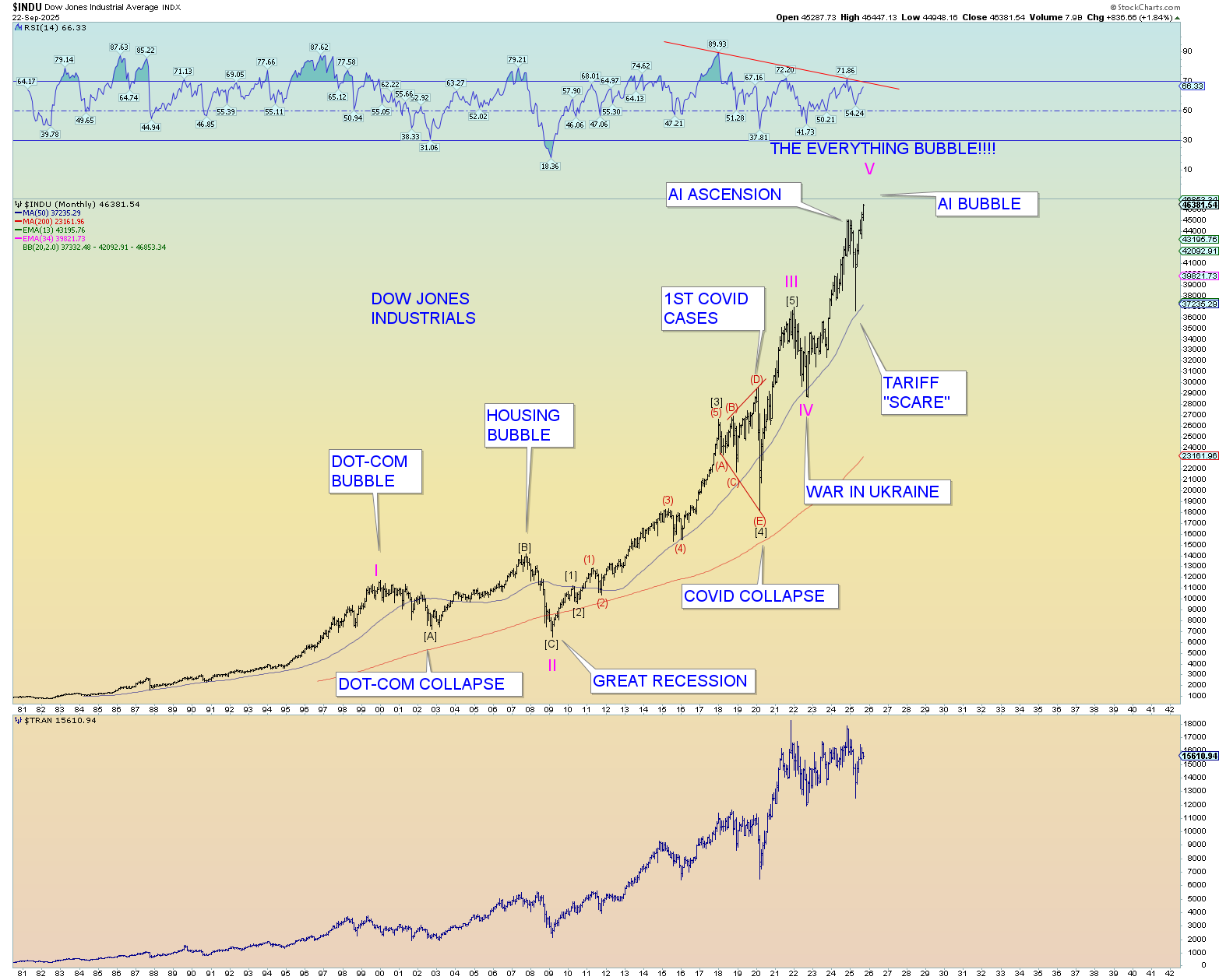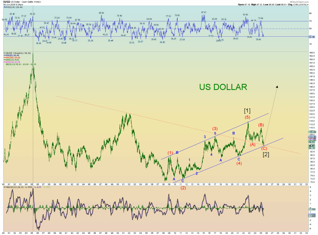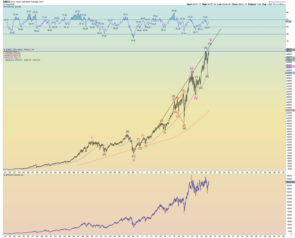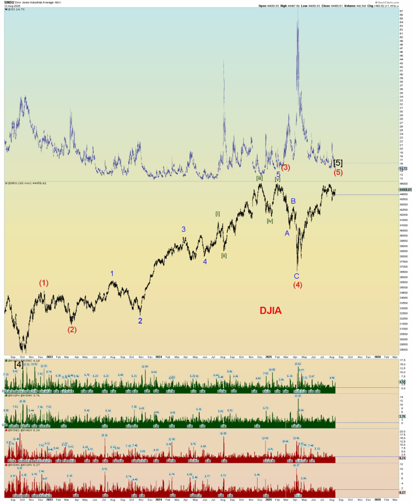 If the DJIA breaks above 45,000 in a solid fashion, I believe it will mark a fantastic “Tulip bulb” blowoff top of the likes that catches everyone by surprise. Every junk DOW stock will be bid to the moon. Likely every junk NASDAQ stock will also be bid. The “Mag 7” tech stocks which has fueled the AI bubble may start to diverge in this scenario and start to drop off ahead of the rest of the blowoff top. So it is getting very interesting.