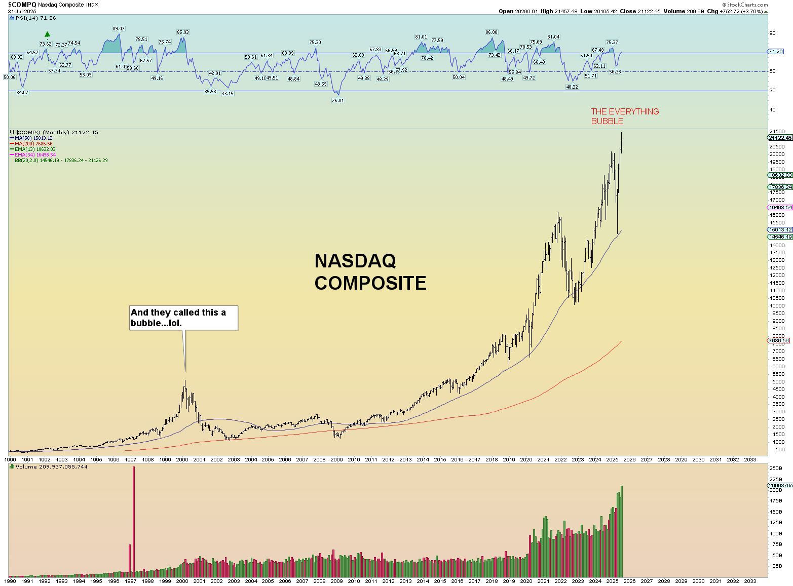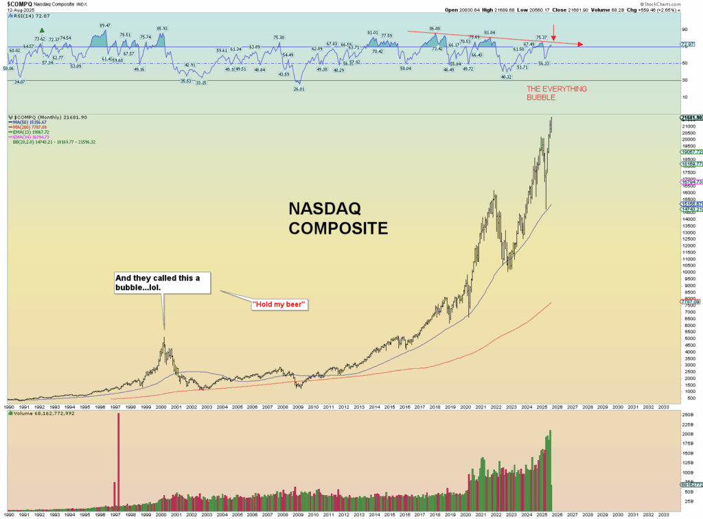 And thus we come to the Nasdaq. The ultimate bubble created by our tech overlords. LLM “AI” is shitty and trash and worthless and nothing but a lie. But they have nothing else to offer but the dream of being like the most high God in fooling the foolish into believing they can make a bunch of computer code and algorithms as if it can even come 1% close to the ability of the God-created human brain.
