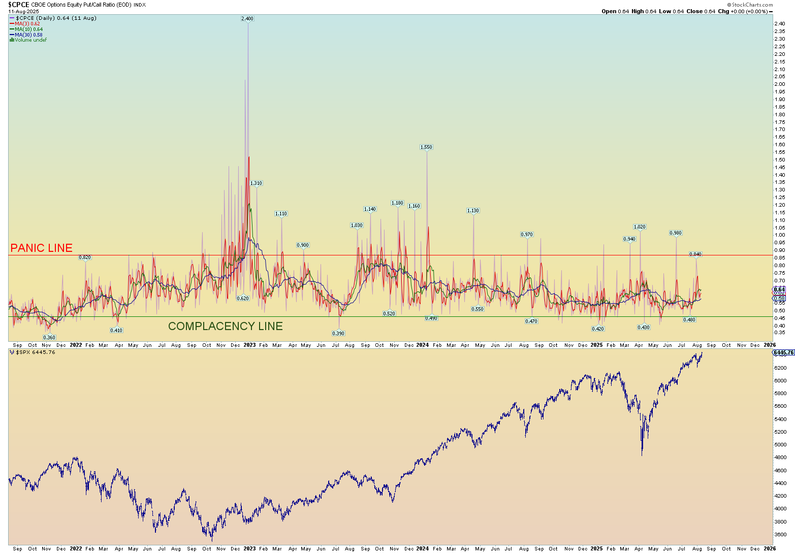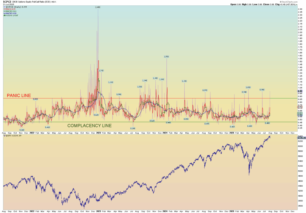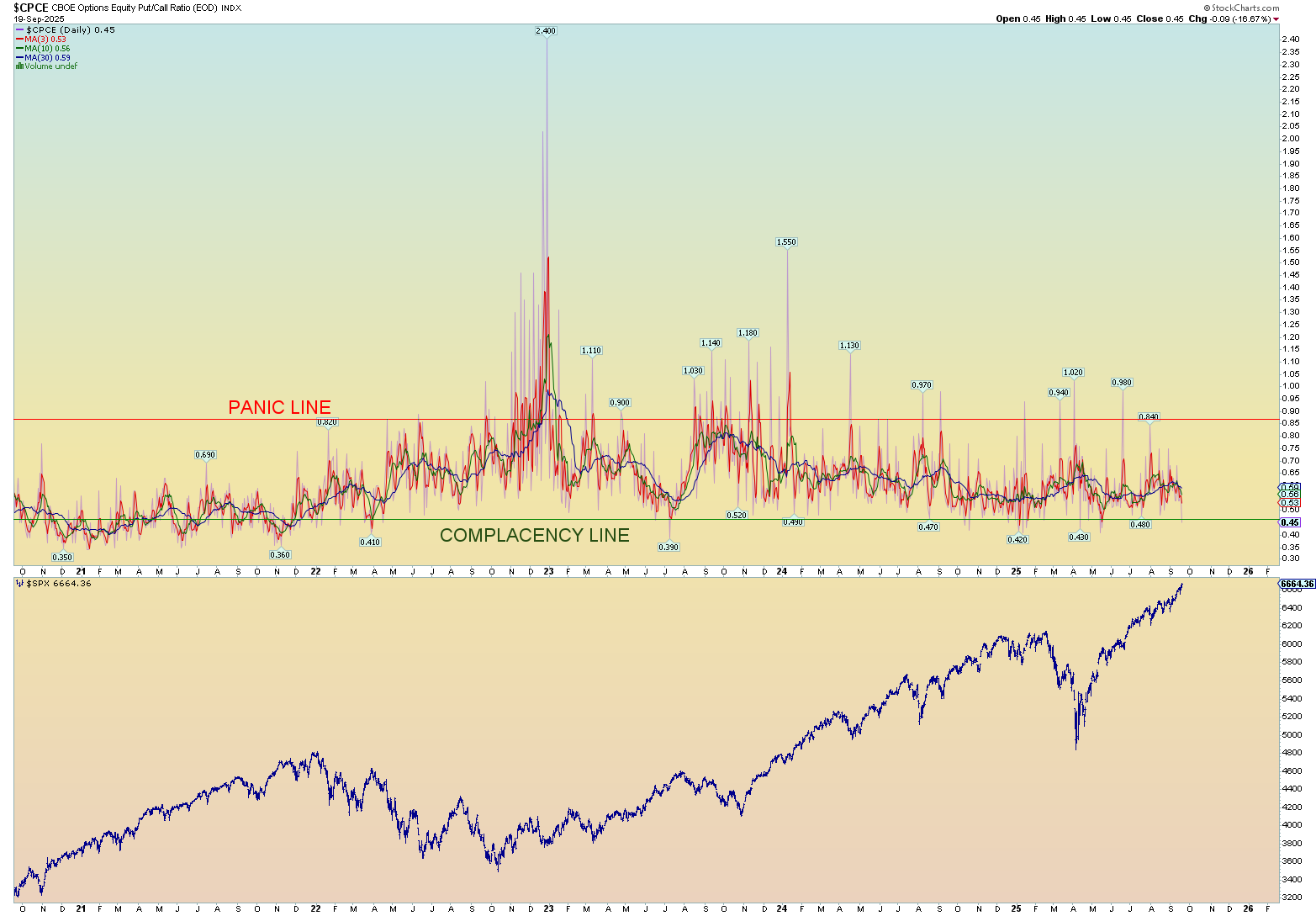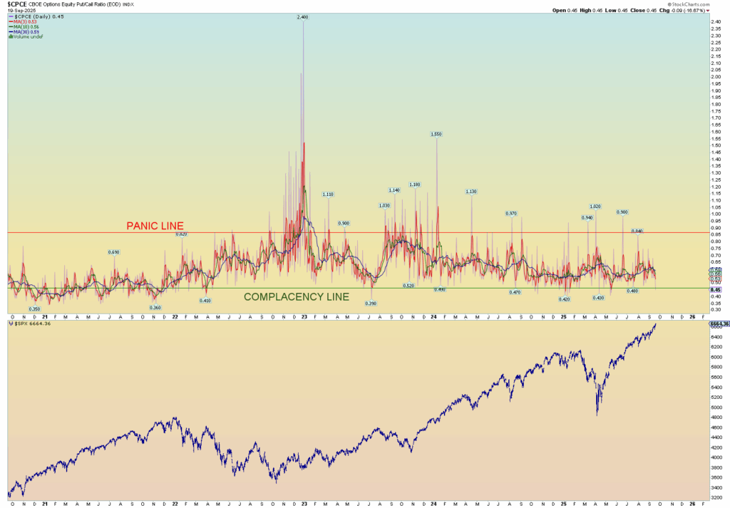 Some crazy low CPCE ratio number on Friday: .45 ratio. It’s been quite some time since the market has seen any real panic and that’s including the sharp decline of early 2025.