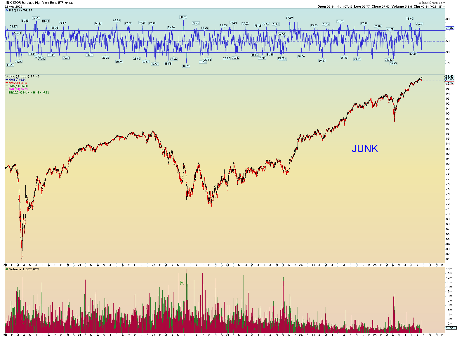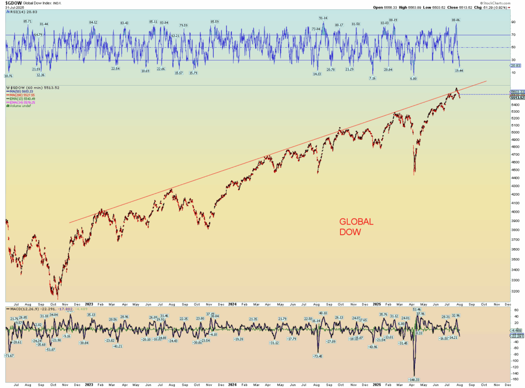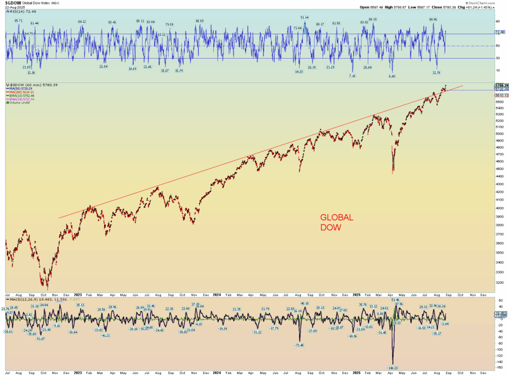 The “news” of the market screaming higher is that Powell will support a September cut. Well of course he does, because finally the market has signaled to him, he must do so. Powell HAS to follow the market. The Fed rate cannot get out of whack with what the massive treasury market signals. The market leads, the Fed follows. Who thinks a .25 cut will help anything at this point? A credit card at 29.99% cut to 29.74% is NOT helping the consumer. Nor is it really helping the overall interest debt load of the US Treasury which has surged to over a 1 trillion a year. Yeah, it’s all just funny money now, isn’t it?