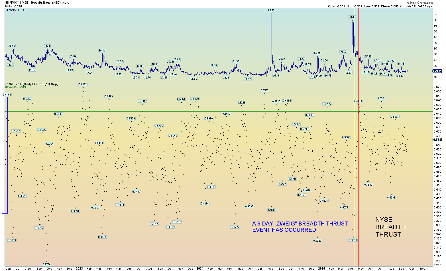 It’s also been a while since the NYSE experienced a “negative” event that resulted under .40 breadth (the bottom red horizontal line). So, the market is due for a panic event.